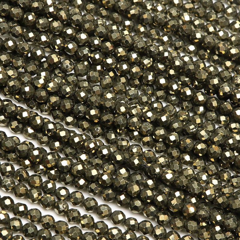 - ゴールデンパイライト 面カット 丸玉 2mm[プレミアムカット]【1連販売】 / 7-16 PA2MC