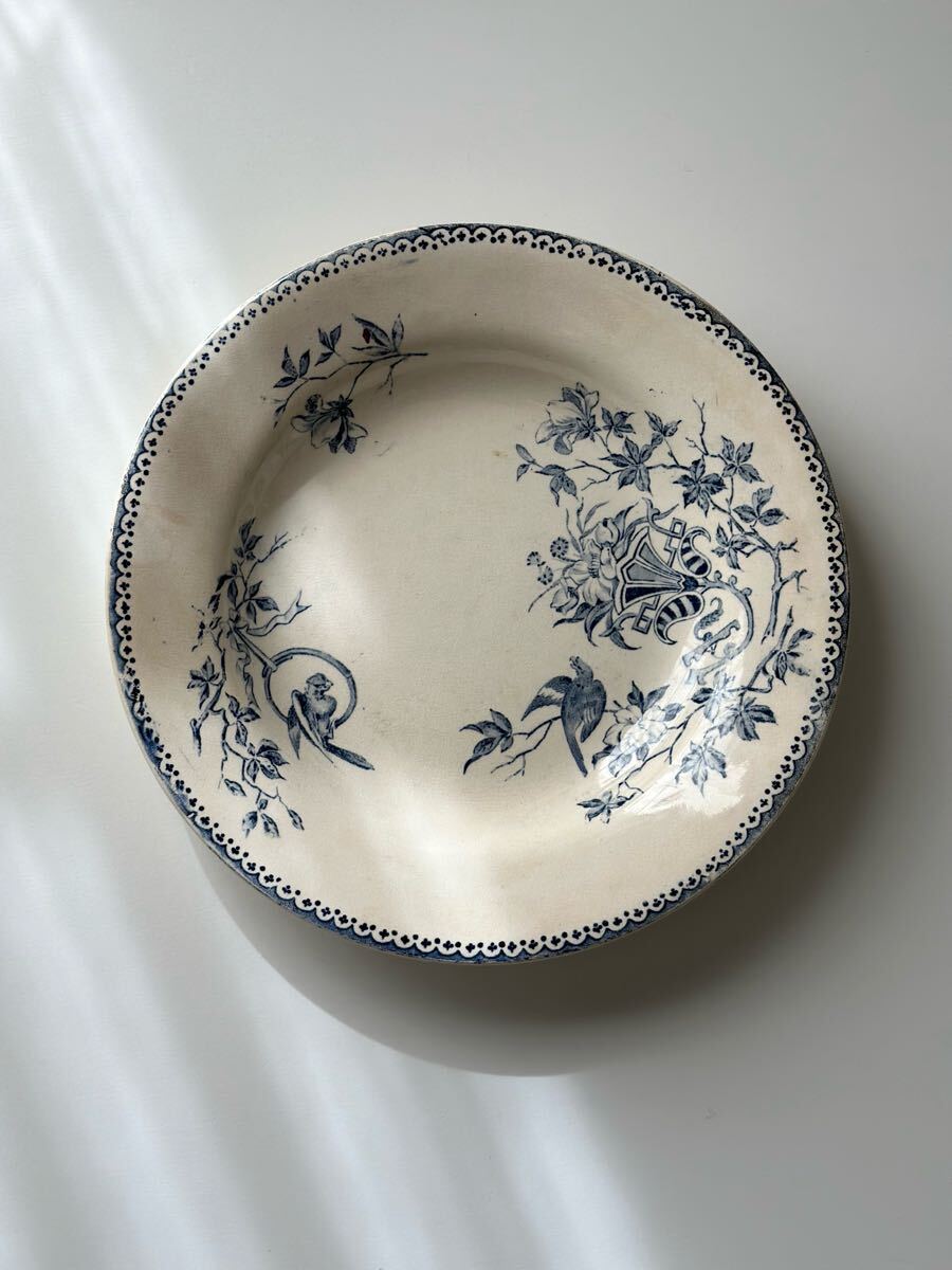 > 古手 フランス アンティーク 皿 Creil et Montereau クレイユモントロー / “PERRUCHE” 愛らしいインコのプレート 深皿