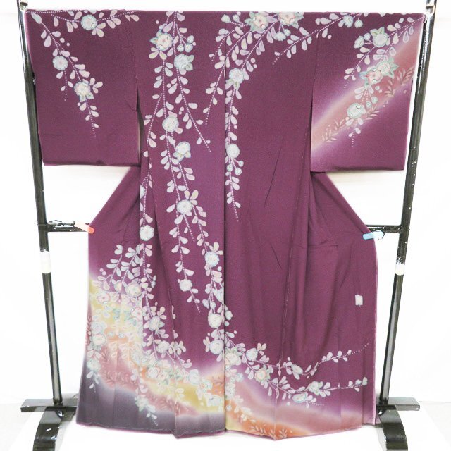> 訪問着 着物 未使用 未仕立て 仮絵羽 フォーマル 作家物 落款 花の図 辻が花 絞り 紫鳶色 多色 きもの北條 A1148-12
