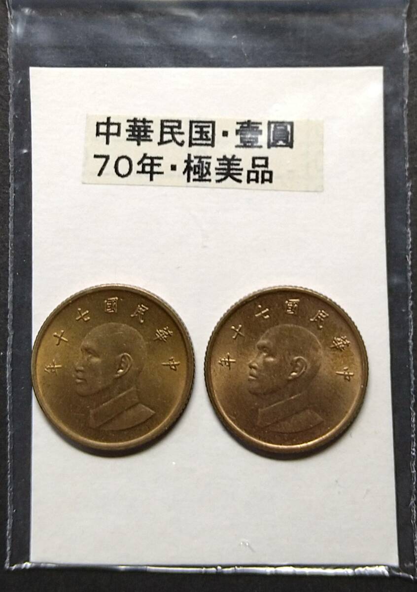 - 中華民国・壱円硬貨・70年(2枚)【中古】