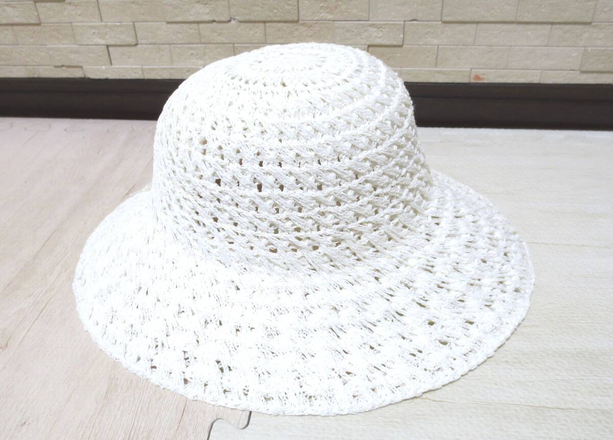 > クロッシェ コットン帽子 白い帽子 白いハット バケットハット グラニースクエア 手編み帽子 日除け帽子 ホワイトハット