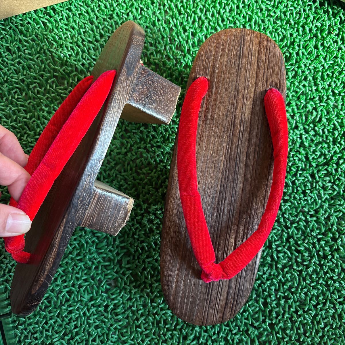 - 数回使用赤色下駄サイズ23cm 浴衣 和装小物 レトロ 花火大会 お祭りに