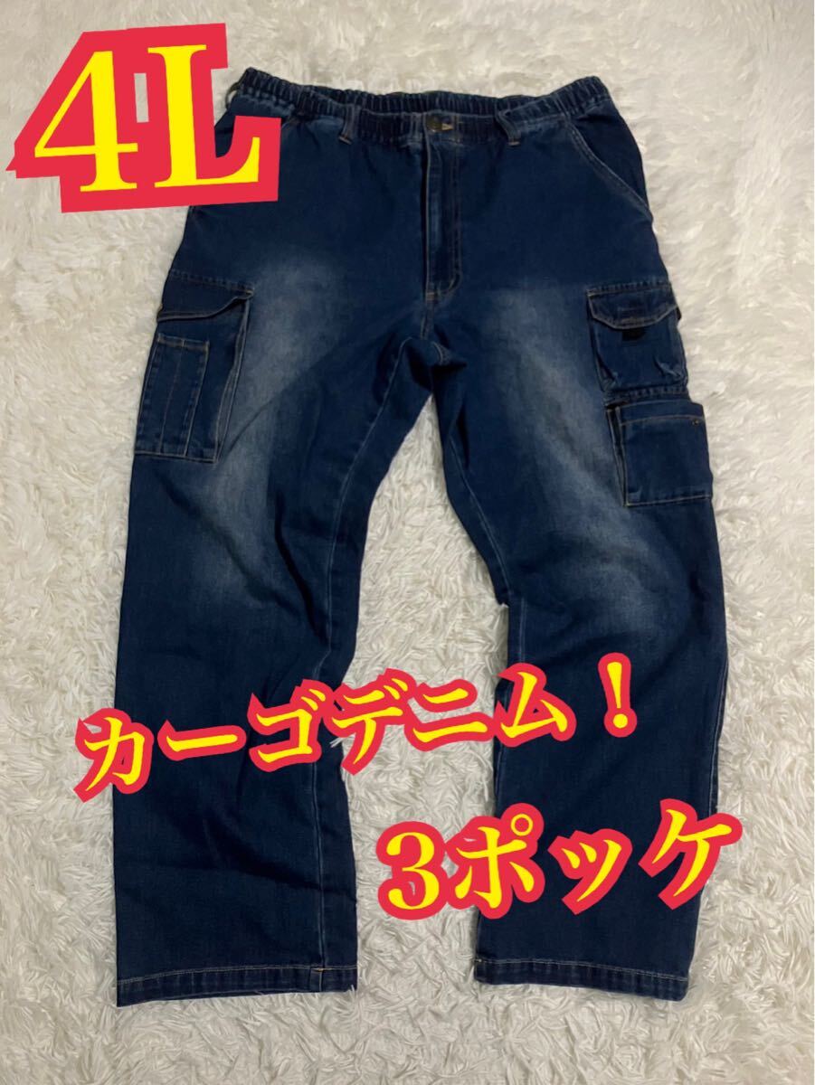 - カーゴパンツ 3ポッケ ワークデニム ジーンズ アウトドア メンズ 4Lサイズ