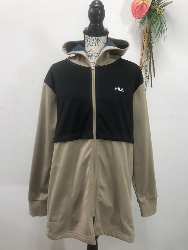- 3501 レディース 【 FILA 】スポーツウェア フード付きフルジップジャケット サムホール サイズ:L 色:ベージュ柄入り