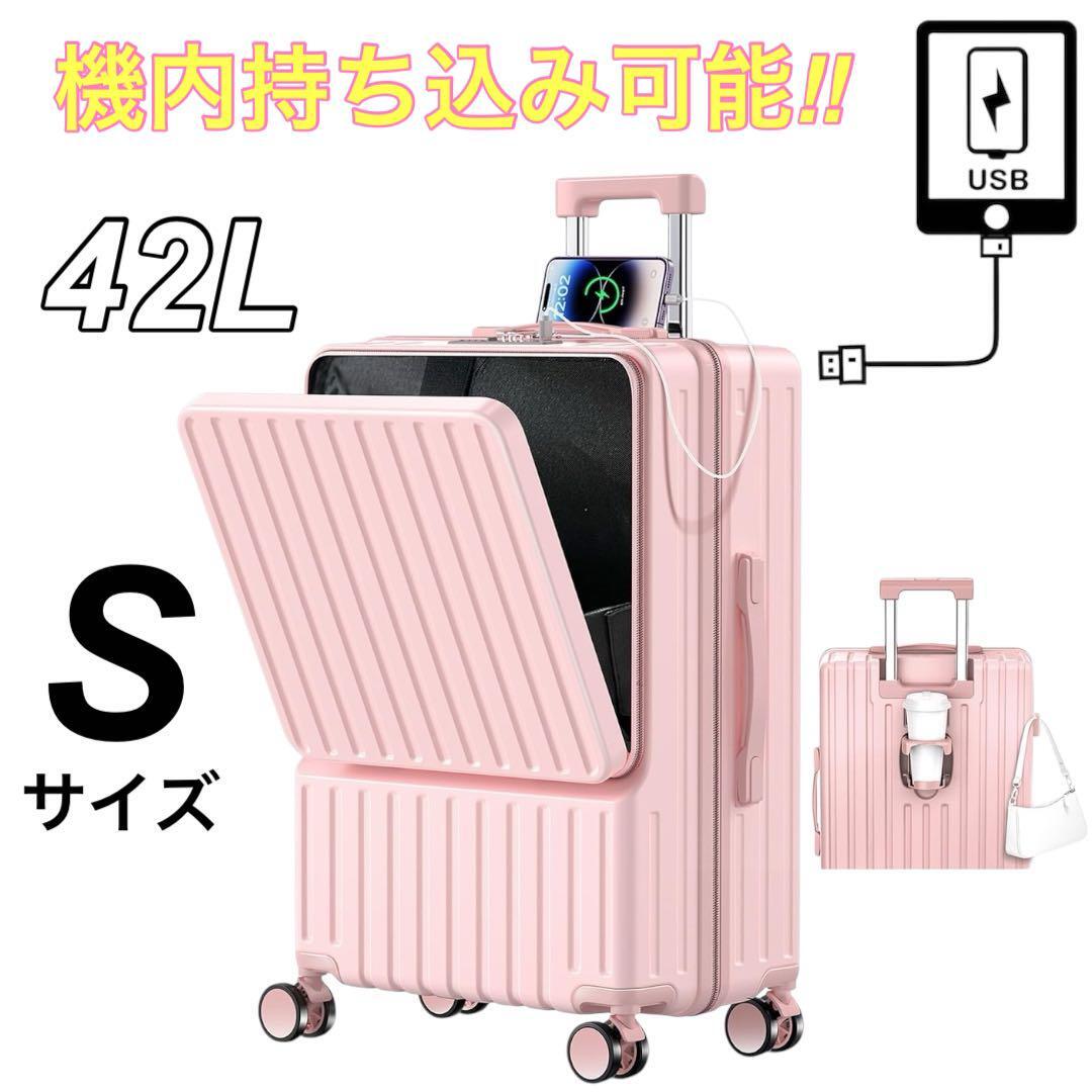 - スーツケース ピンク Sサイズ 42L 機内持ち込 キャリーケース USBポート