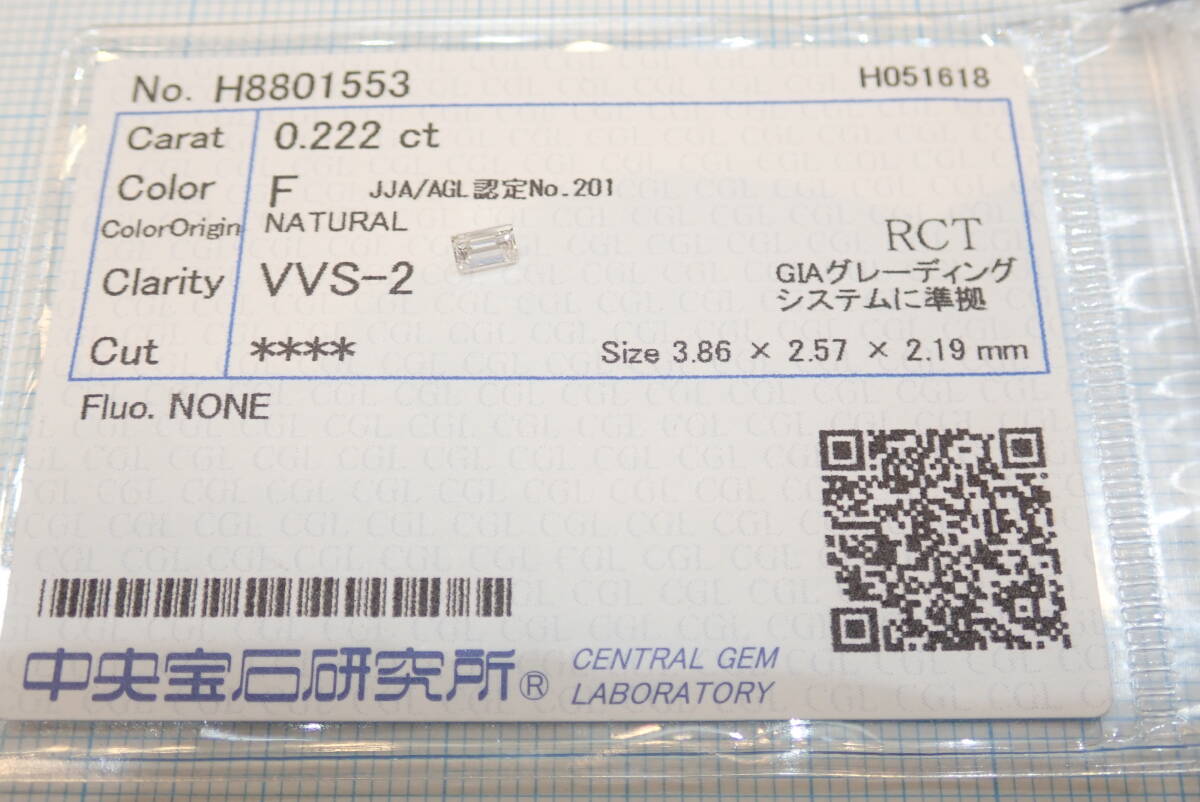 - ■ダイヤモンド 0.222ct F VVS-2 中央宝石研究所 ソーティング RCT■ダイヤ ルース■