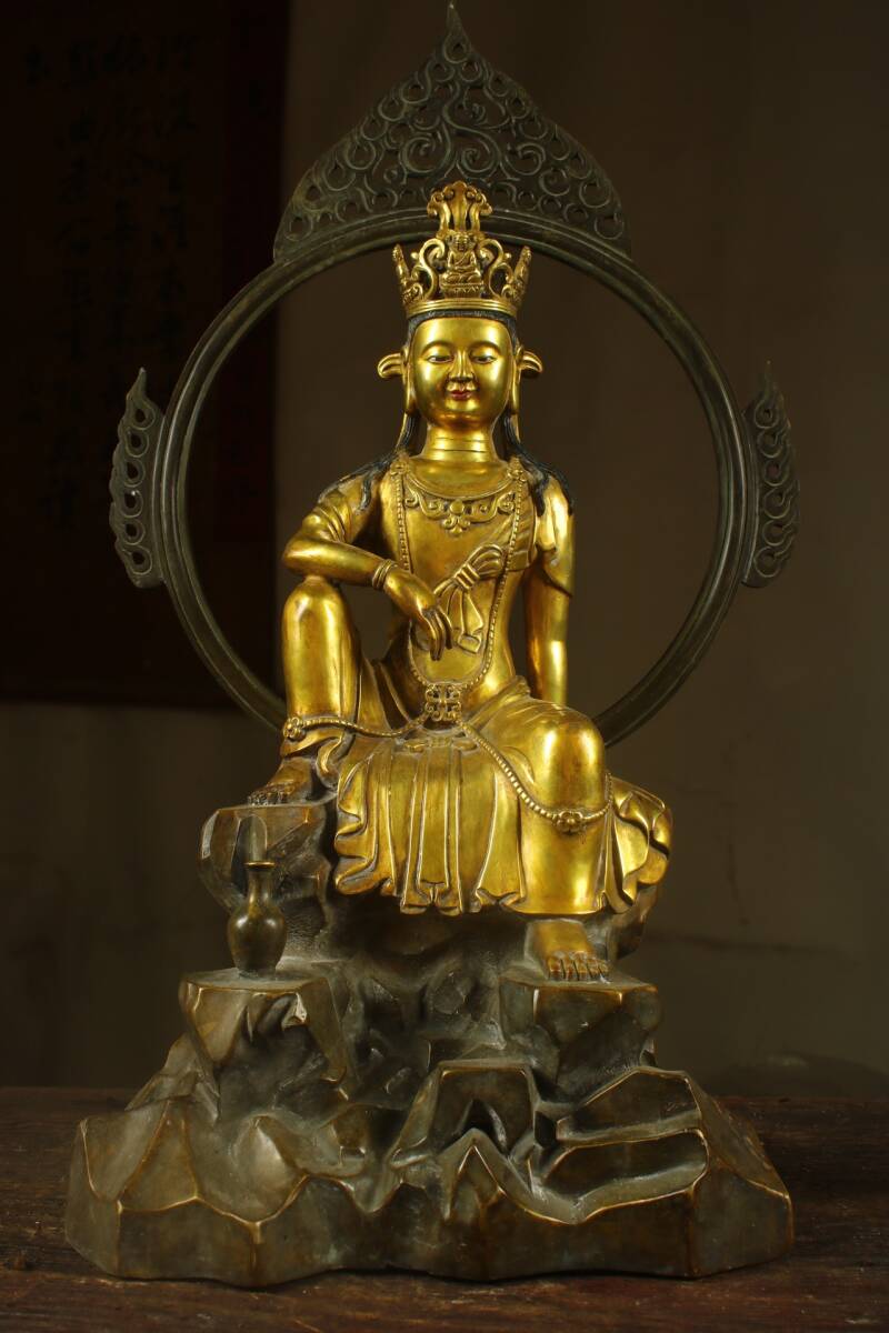 - 『清・仏教古美術・古紫銅流金彫・自在觀音像・文案置物・密宗密教・供養品』極細工・時代物・東洋彫刻・古賞物・中国古玩・中国古美術