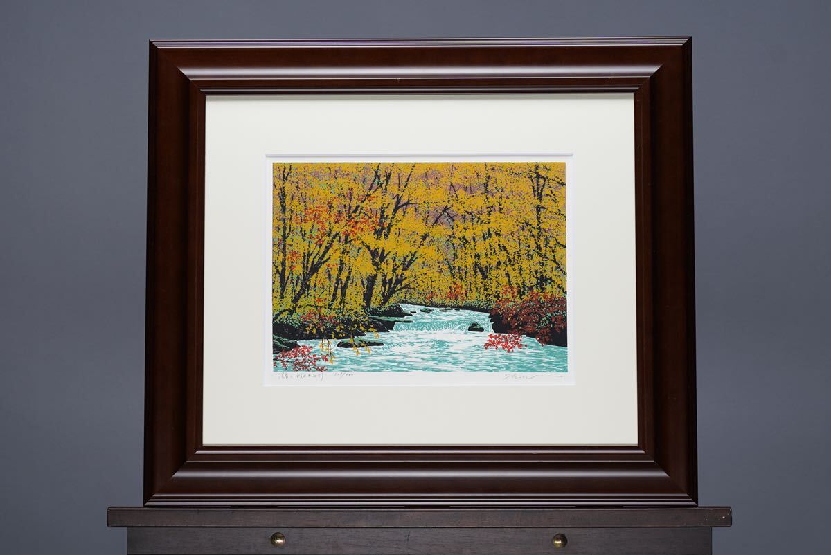- 真作 小暮真望「渓音・秋のかおり」シルクスクリーン 画寸(28cmx20cm) サイン・シールあり 状態良好!#奥入瀬 紅葉