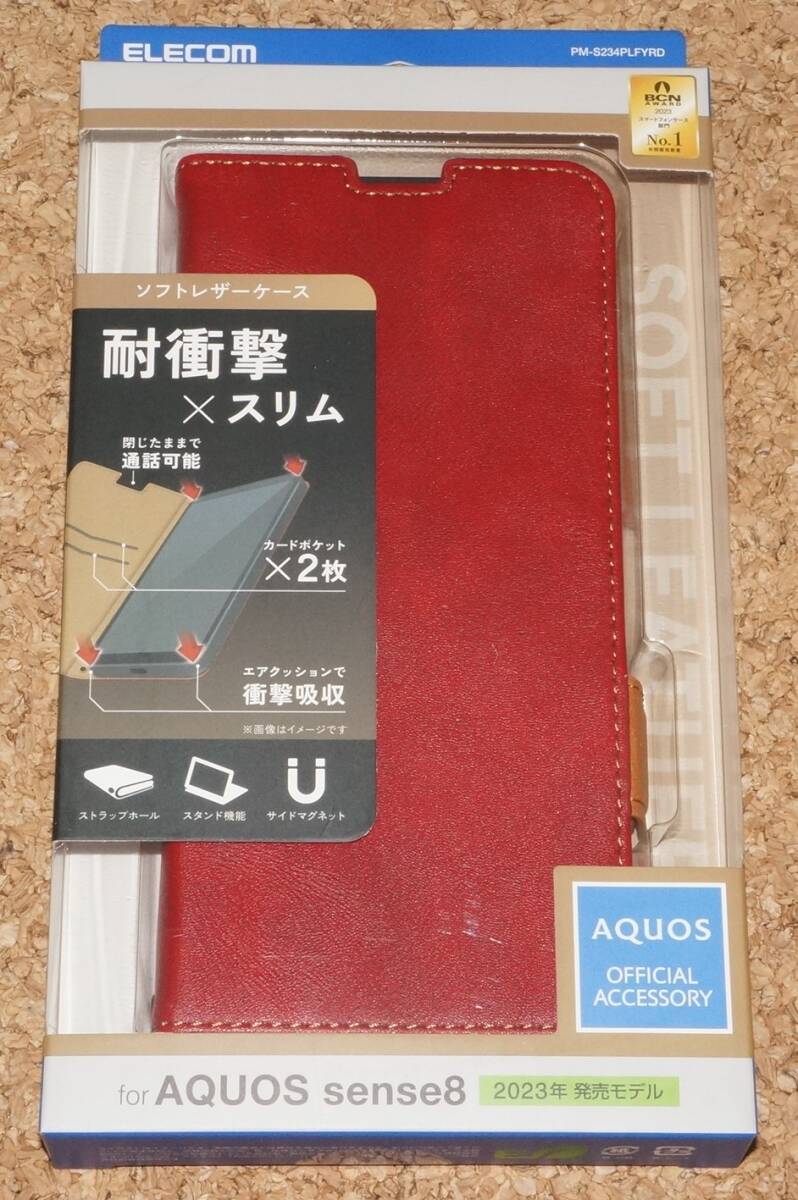 > ★新品★ELECOM AQUOS sense8 レザーケース 耐衝撃×スリム レッド