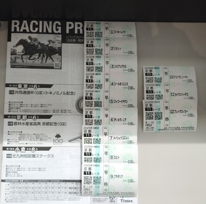 - 【2025.2.16 京都記念】出走全頭 現地単勝馬券&レーシングプログラム☆優勝ヨーホーレイク☆JRA 匿名配送