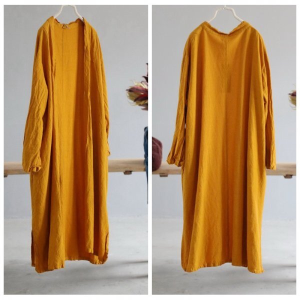 - jm カーディガン 羽織物 柔らかな素材 楽な着心地 軽やか 麻100% ゆったり ダル タフ マンゴーイエロー