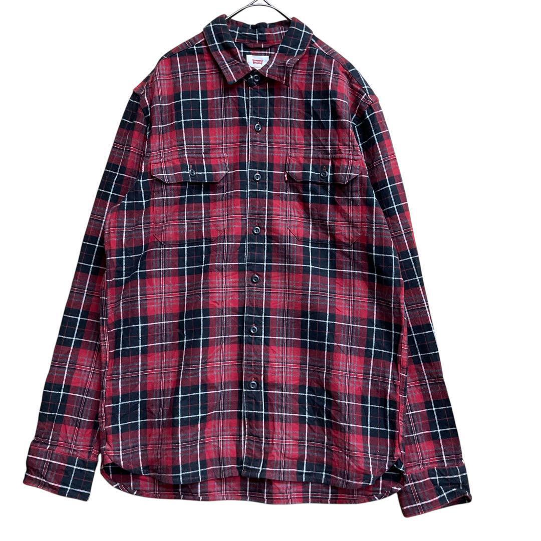 - リーバイス メンズフランネルシャツ 赤×黒 M 長袖 チェック柄【2088】