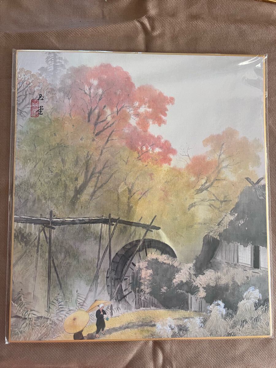 - ◆色紙画 川合玉堂 彩雨 印刷画◆B-2265