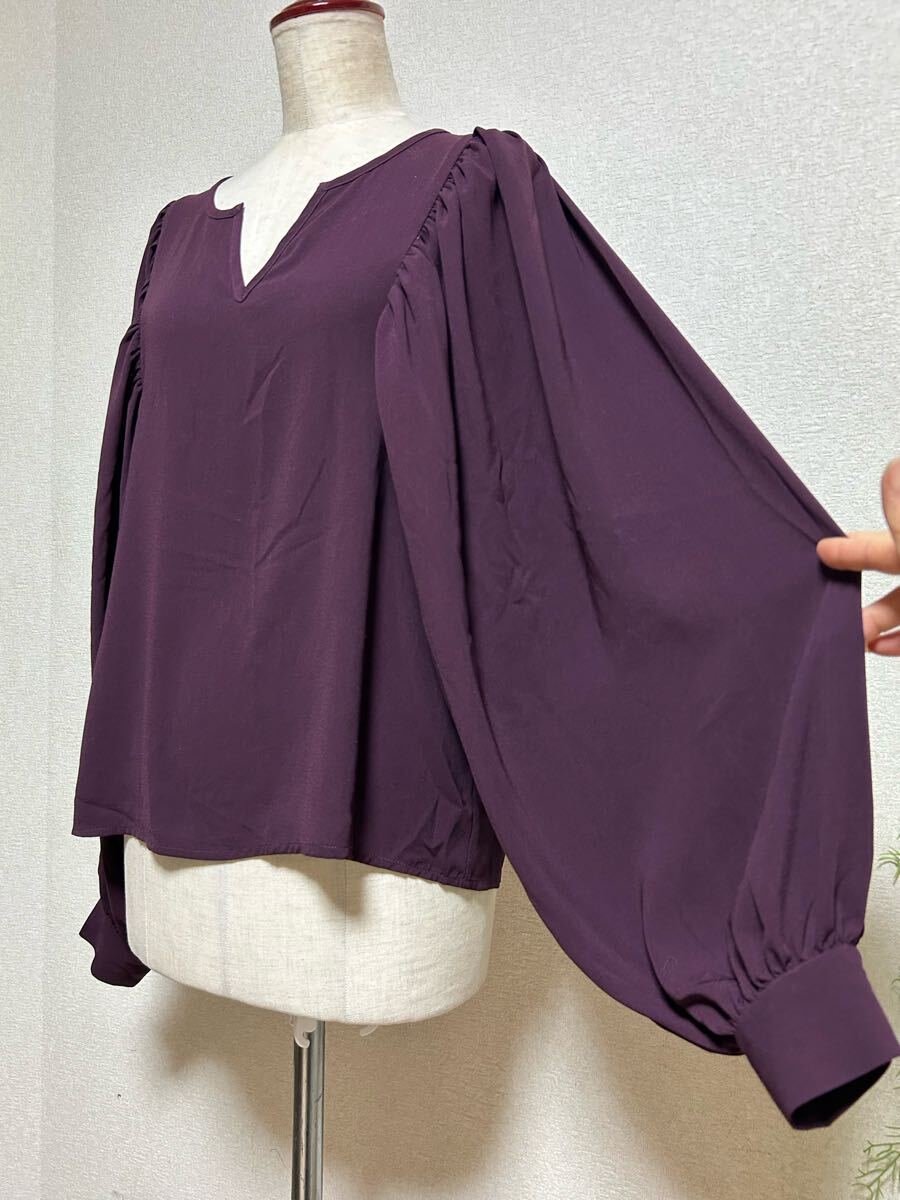- 3700円・新品【TRUDEA★トルディア】バルーン袖プルオーバーブラウス・ボルドー・Mサイズ