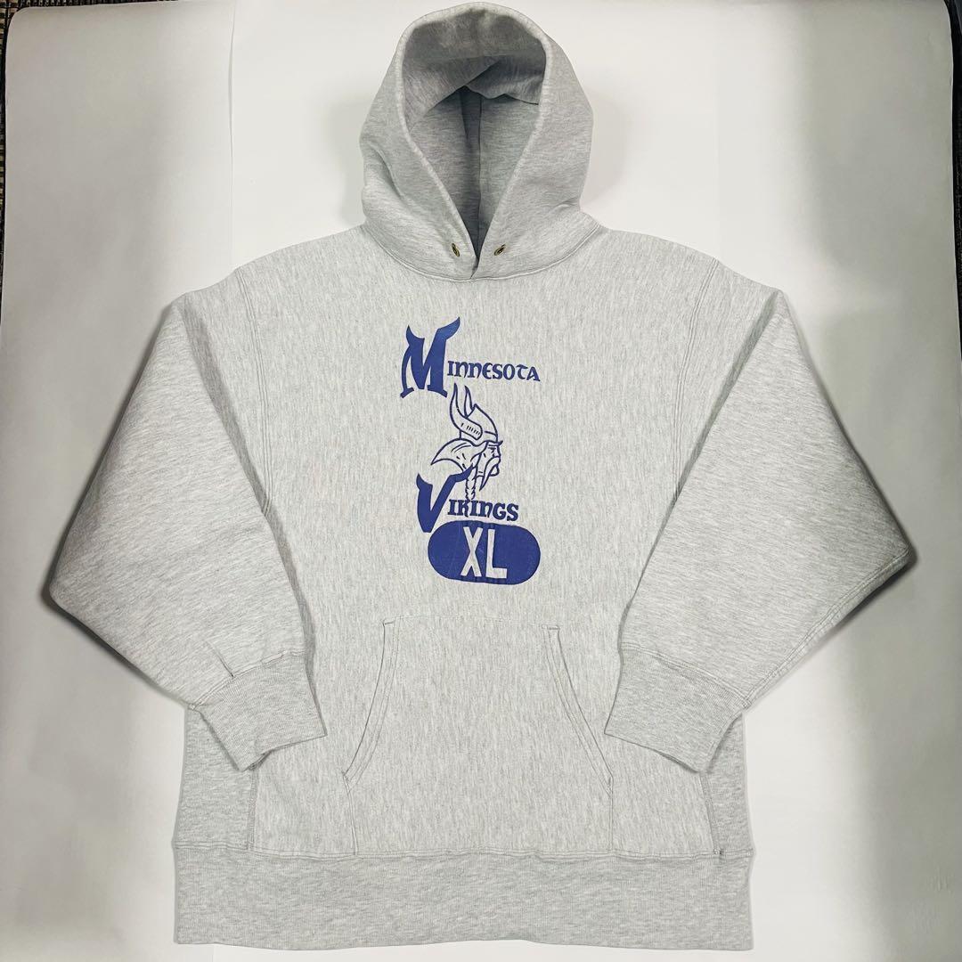 - 希少4段プリント 80's トリコタグ後期 チャンピオン リバースウィーブ パーカー ヴィンテージ スウェット MINNESOTA VIKINGS USA製