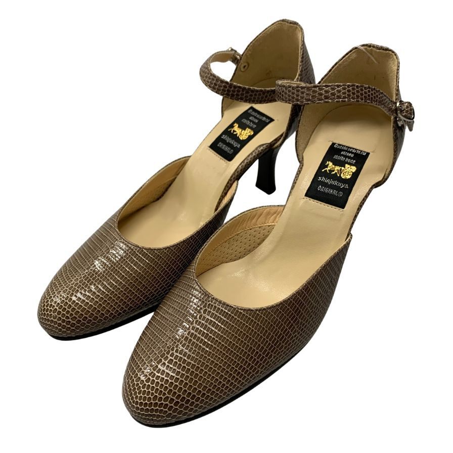 - 新宿屋 レザーパンプス リザード 7105-555 ブラウン 23cm レディース shinjukuya 約23.0cm【AFD1】