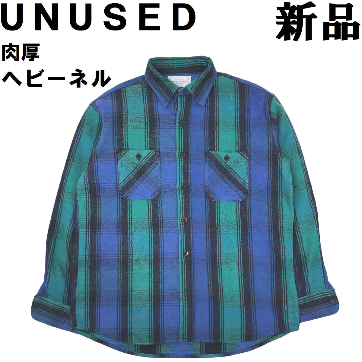 - 【新品◆定価40700円】UNUSED アンユーズド ヘビーネルシャツ 1 ゆったりめM相当 緑 青 グリーン ブルー US2094