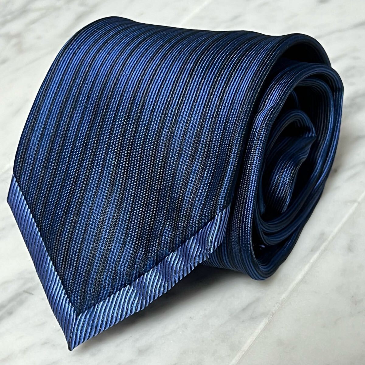 - 【美品】 999円~ ブリックハウス ネクタイ ブルー系 ブラック ストライプ (B2)