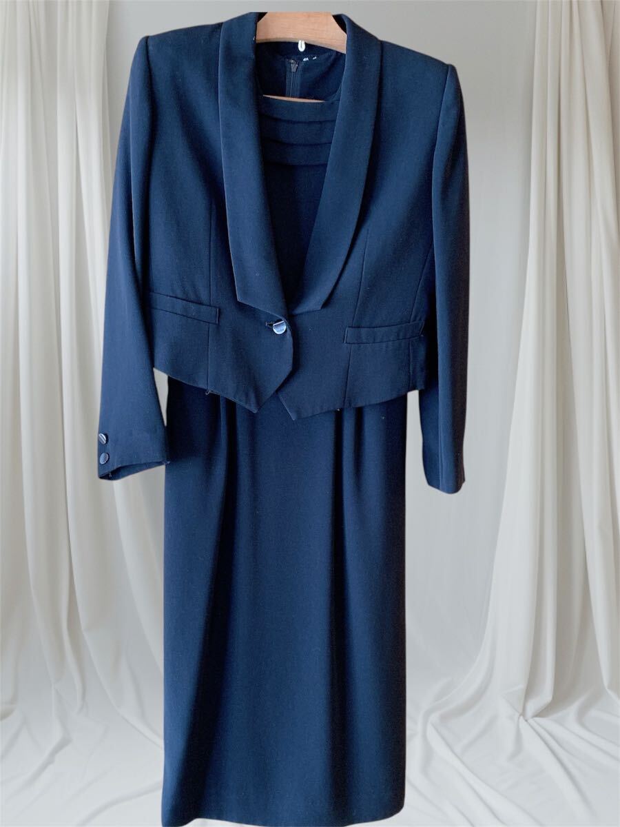 - ブラックフォーマル 9号 ワンピース スーツ風ワンピース 喪服 セットアップ 冠婚葬祭 黒 ジャケット 東京イギン 日本製 昭和