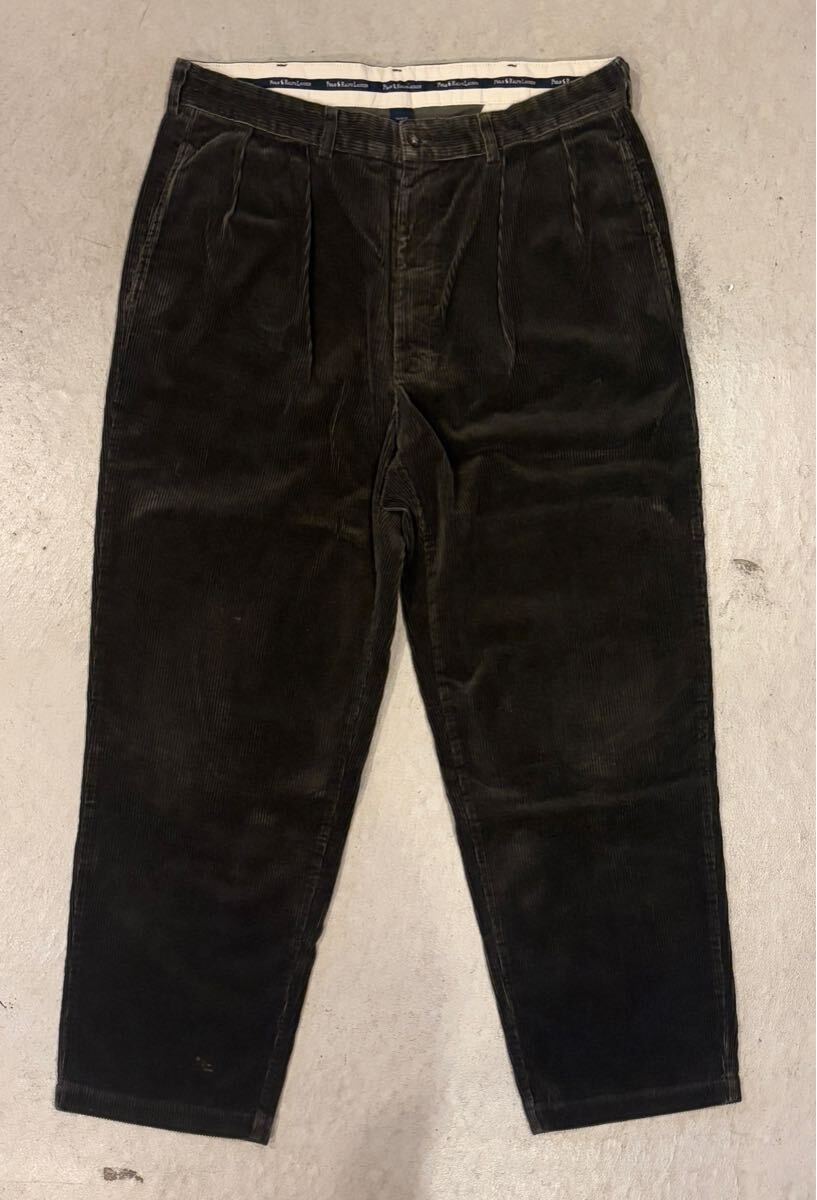 > 【90s】POLO RALPH LAUREN ポロラルフローレン コーデュロイパンツ ツータック テーパード メンズ W36 オリーブ カーキ 太畝 vintage 正規