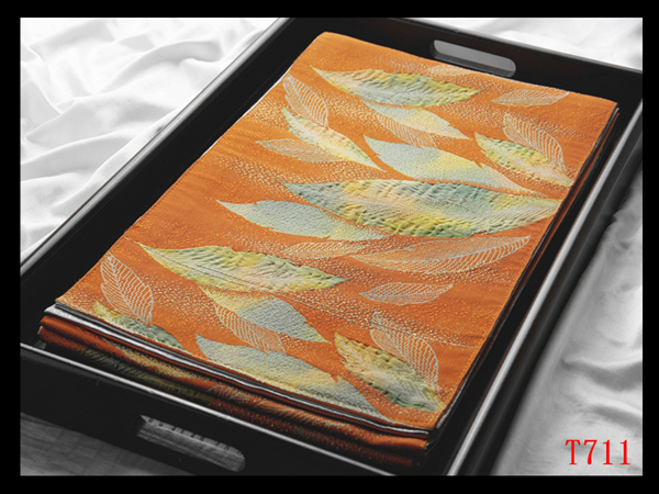 - 蔵【T711】西陣美品 ふくれ織 蜜柑色地 気品豊かに 正絹純金糸六通高級美術京袋帯 ◇検◇簪着物袋帯和装小物帯締め