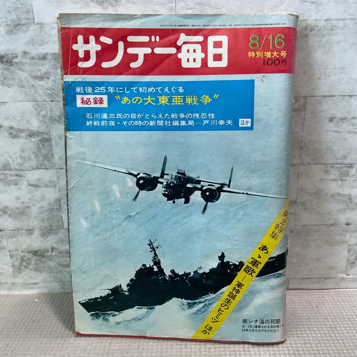 > D12●サンデー毎日 1970年8月16日発行 特別増大号 毎日新聞 昭和45年 大東亜戦争 軍歌 南シナ海の死闘 万博 250220