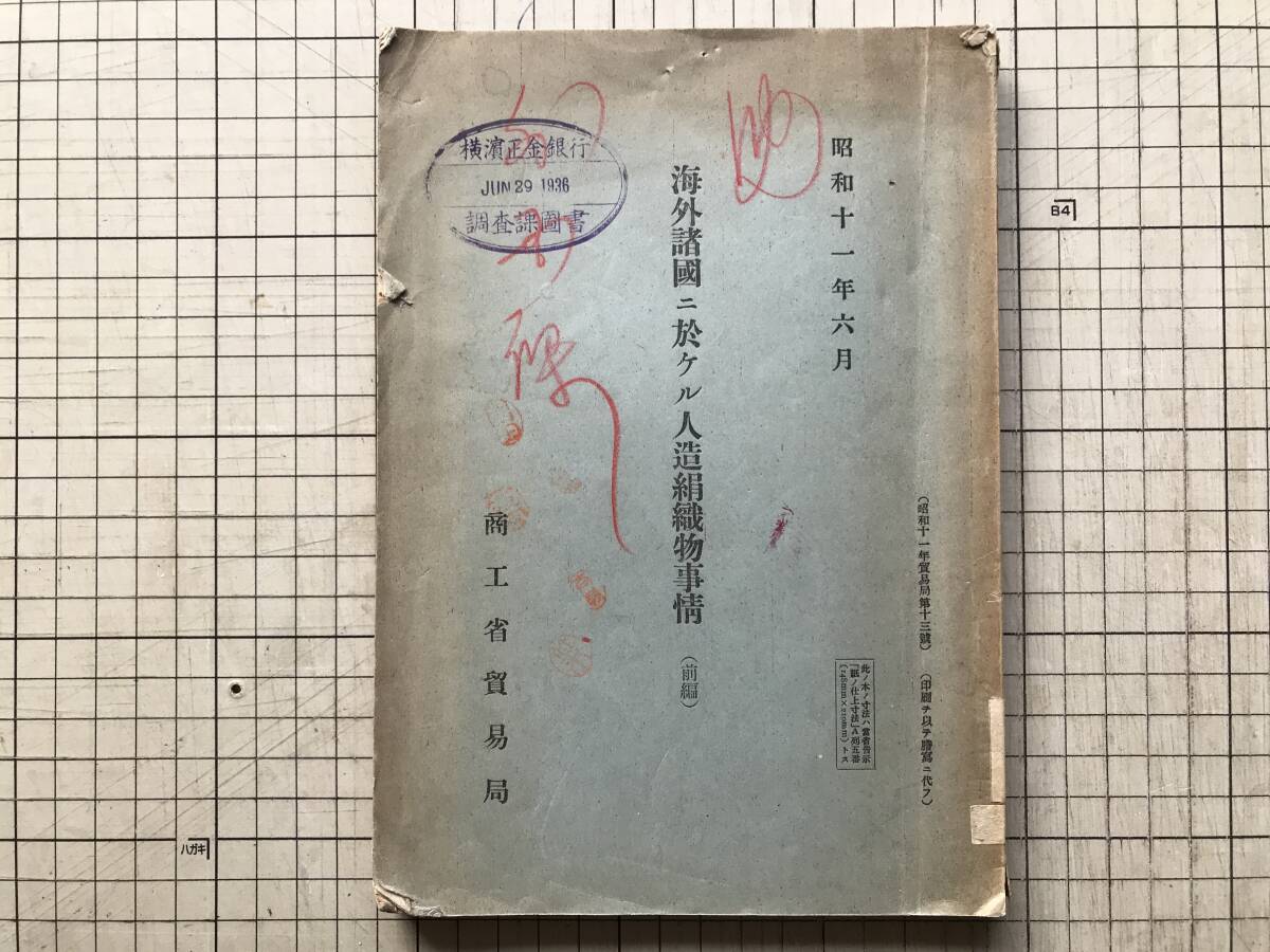 - 『海外諸国ニ於ケル人造絹織物事情 (前編) 昭和十一年六月』商工省貿易局 1936年刊 ※満洲・中華民国・山東・天津・香港・馬来 他 10931