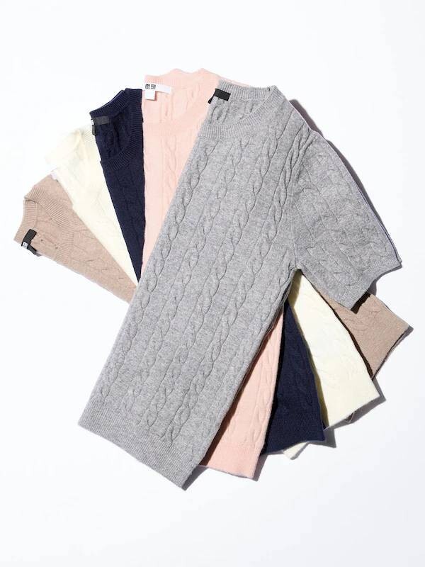 - ユニクロ ケーブルクルーネックセーター 半袖 Lサイズ ピンク