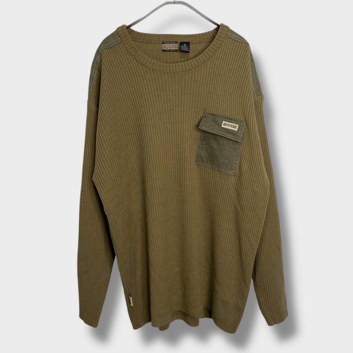 - 送料無料☆ENYCE☆90s☆エニーチェ☆リブニット☆ウールセーター☆ポケット胸ポケット付き☆カーキ☆XL☆B25M