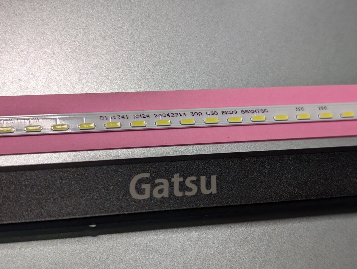LEDバックライト単体です。モニター本体ではありません。画像の1本だけをお送りします。そのほかに映っている画像は、商品の解説のため掲載するものです。状態きれいです。画面割れ品より取り外しました。LEDバーは、修理経験の豊富な私自身が丁寧に外しました。折れ曲がりもありません。純正の制御基板 を接続して、点灯確認済みです。配送の途中で折れ曲がらないように、LEDバーと併せて、Gatsu のフロントベゼルを添えて、あわせてお送りします。到着したらベゼルは捨ててください。