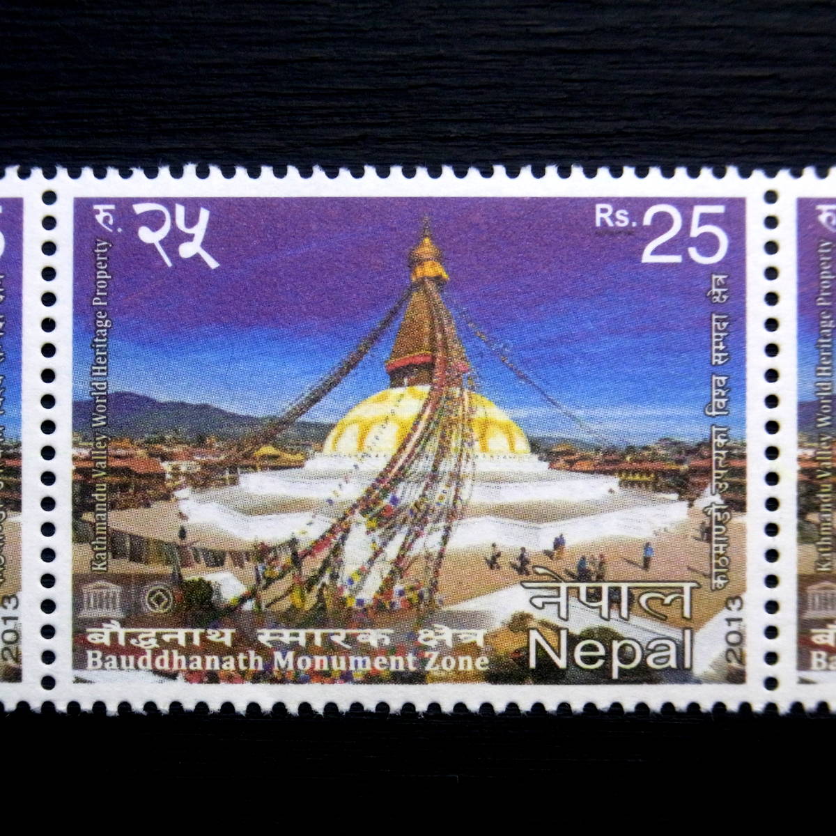 - 世界の切手シリーズ ネパール編 ボッダナート寺院 世界遺産 ステゥーパ 3枚綴りセット 2013年製