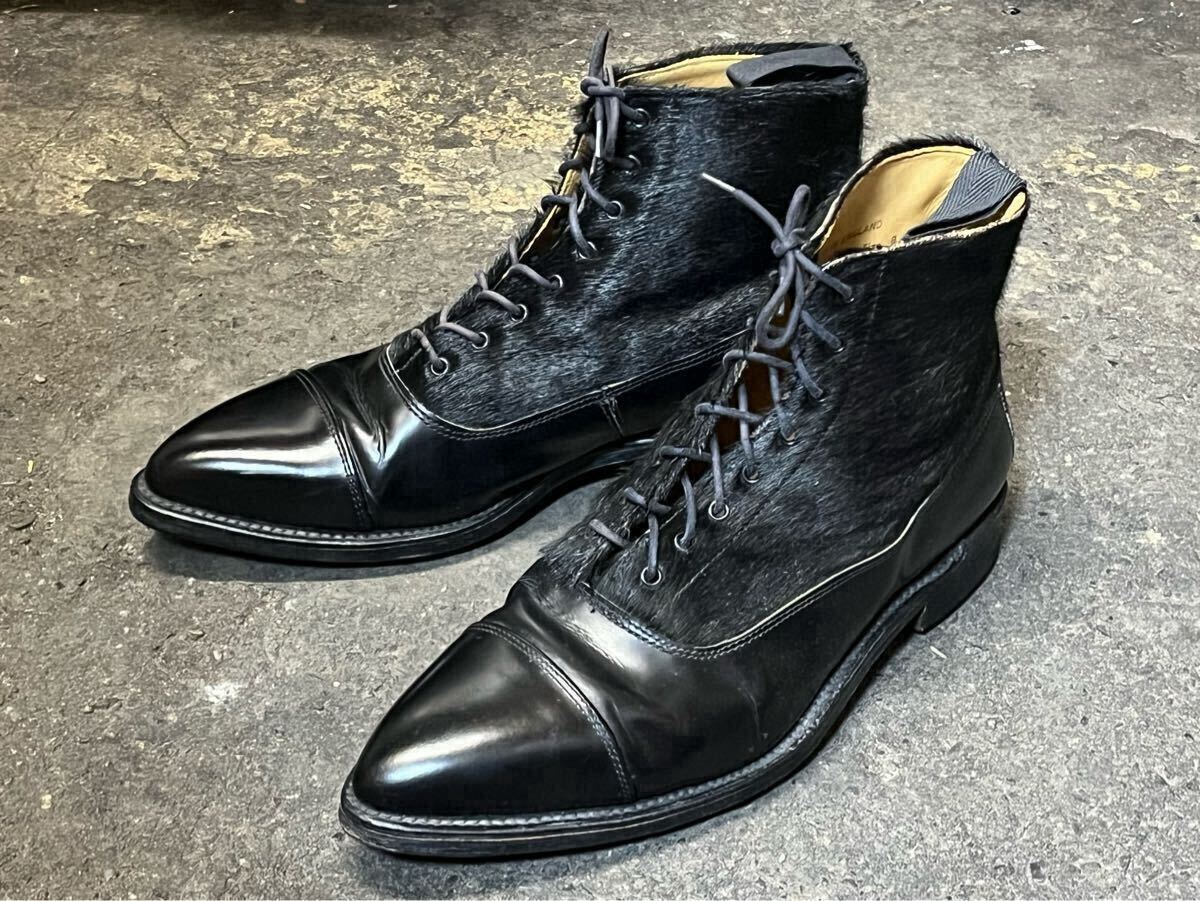 - ジョージコックス ブーツ UK8 GOLOSH BALMORAL ハラコ 黒 バラモラルブーツ ポインテッドトウ イギリス製 パンク 50s ロカビリー 666