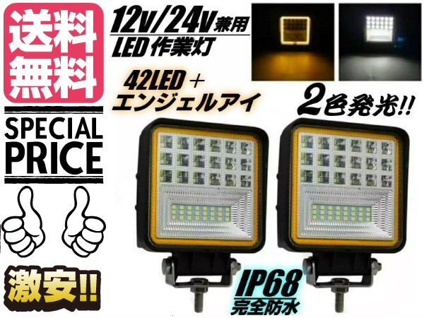 > 12v 24v 兼用 / 2個セット 広角 防水 45w 白 黄 2色発光 LED エンジェルアイ ワークライト 作業灯 投光器 フォグランプ 送料無料/6