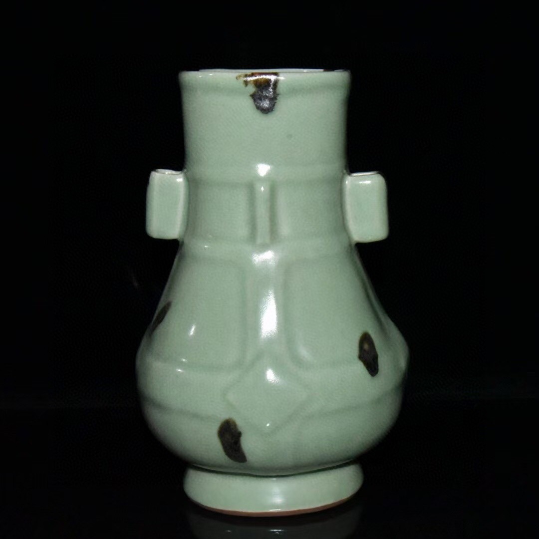 - 【超珍館蔵】宋 古陶瓷品 龍泉釉 點彩 貫耳瓶 置物 古賞物 古美術品 稀少珍蔵品