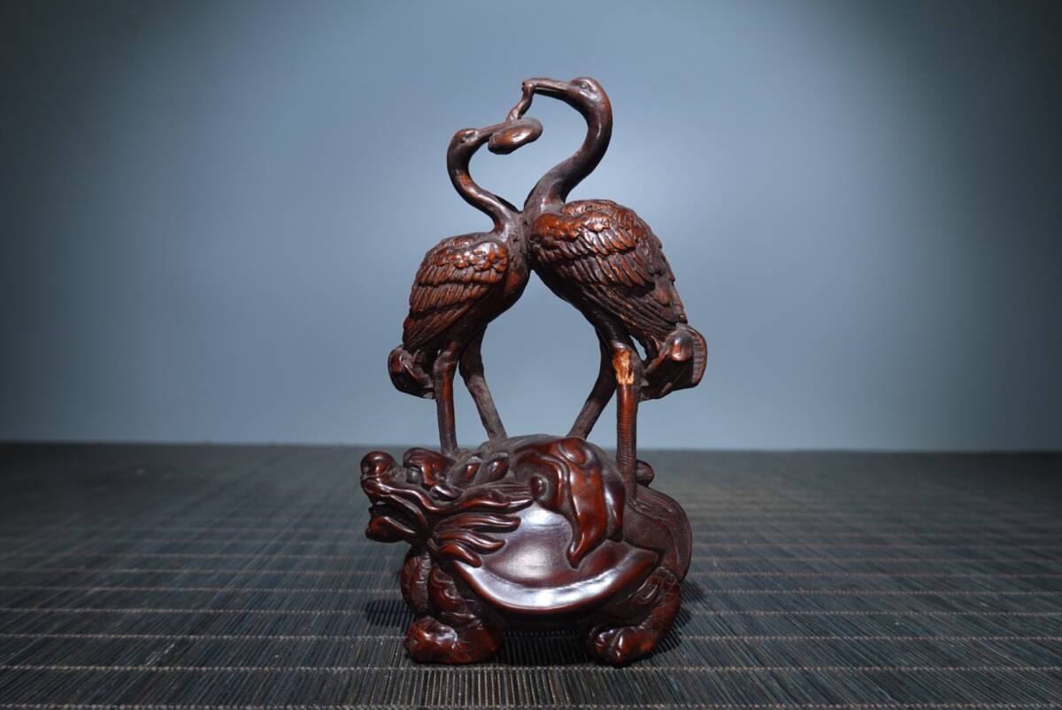 - 【仁】『黄楊木製・細密彫・松鶴延年・置物・賞物』極細工 古賞物 中国古玩 古美術 古美味