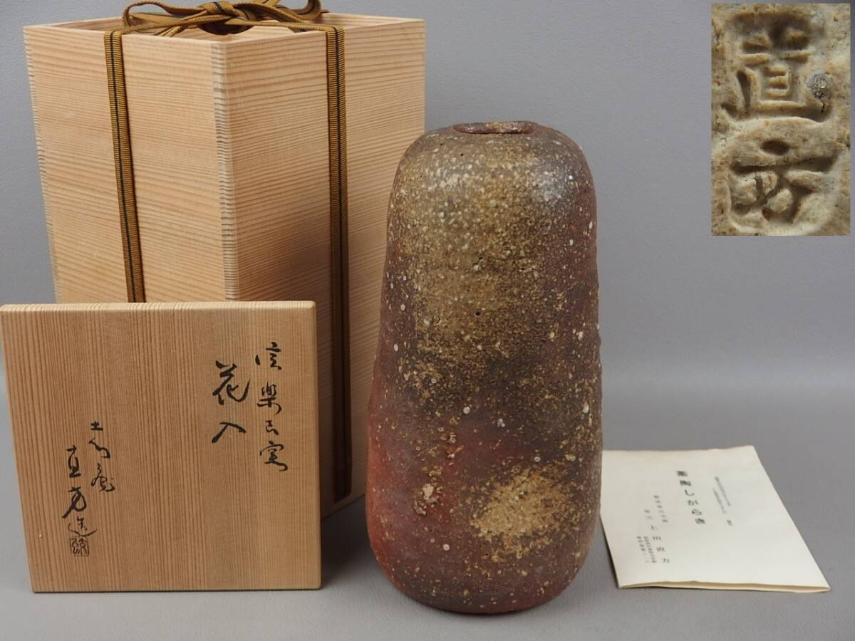 - 【骨董・茶道具】★信楽焼 紫香楽古窯 上田直方★★信楽古窯花入 fs099vb22.7 花瓶 花道 華道