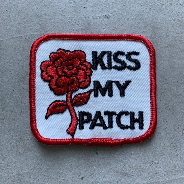 > 【6.4㎝×7.4㎝】デッドストック「KISS MY PATCH」薔薇 刺繍ワッペン 白×赤■ビンテージ レトロ アメリカ古着 70s パッチ ヒッピー No.1