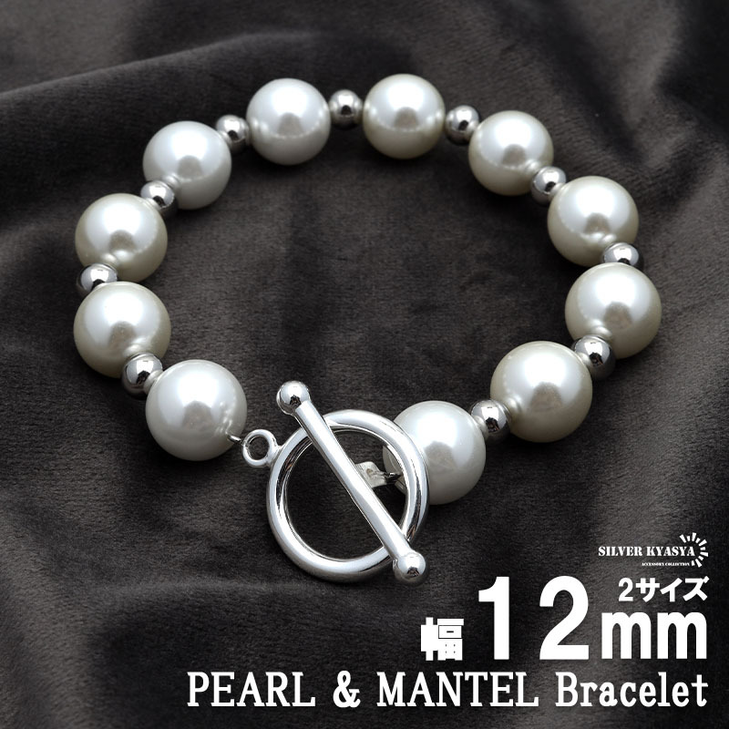 > (21cm) メンズ パール ブレスレット マンテル 男性 ハンドメイド ホワイト 真珠 ボール ビーズ 12mm