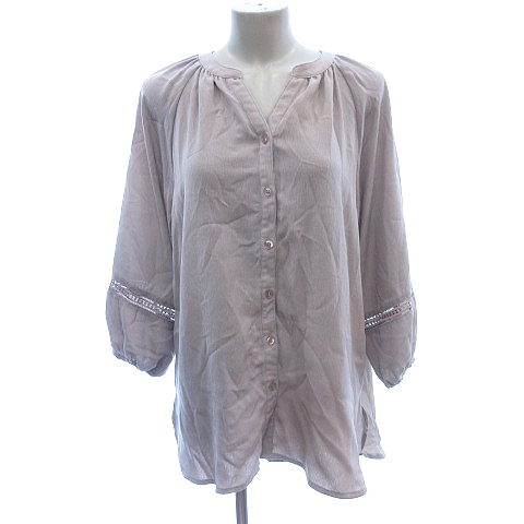 - エドウィン EDWIN チュニック シャツ ブラウス ノーカラー レース バルーンスリーブ 長袖 M グレージュ /AU レディース