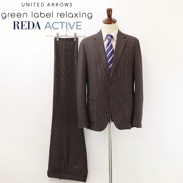 > ◆green label relaxing ユナイテッド アローズ グリーンレーベル × レダアクティブ 千鳥柄 ウール 2釦 スーツ セットアップ L
