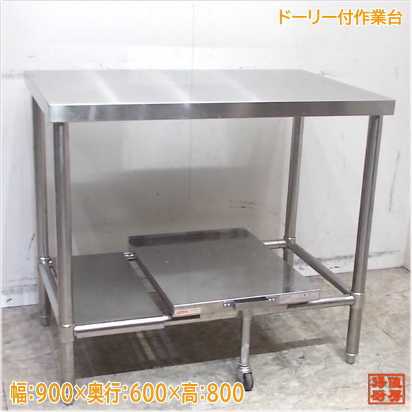 - ステンレス ドーリー付作業台 900×600×800 業務用 中古厨房/25B1218Z