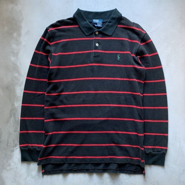 - 【XS/S】SALE!! Polo Ralph Lauren 長袖ポロシャツ 黒赤ボーダー■ビンテージ オールド アメリカ古着 ポロラルフローレン ボーイズ 16/18