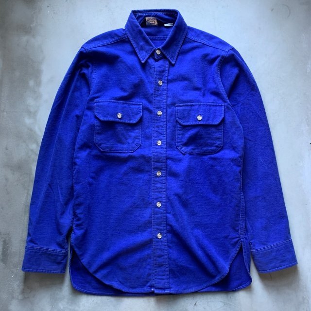 > 【M】80s USA製 Woolrich 長袖シャモアクロスシャツ 青無地■ビンテージ オールド アメリカ古着 コットン ウールリッチ ネルシャツ