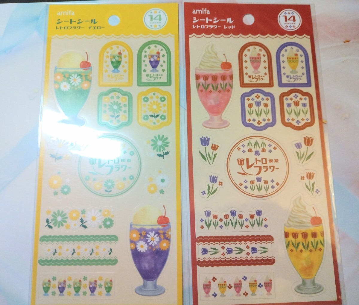 - セリア キャンドゥ シートシール レトロフラワー 喫茶 メロンソーダ