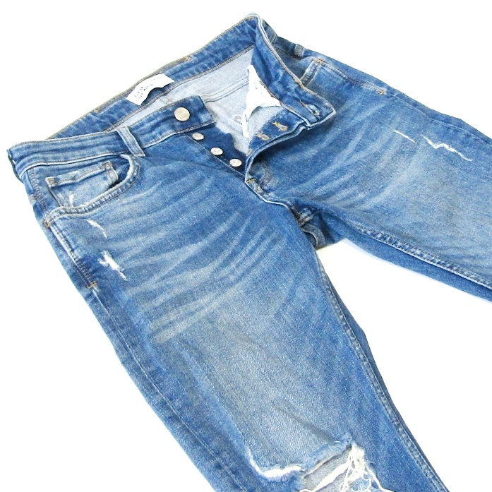 - ZARAザラ▼ストレッチスリムテーパードデニム▼クラッシュ▼30インチ▼ウエスト約78cm