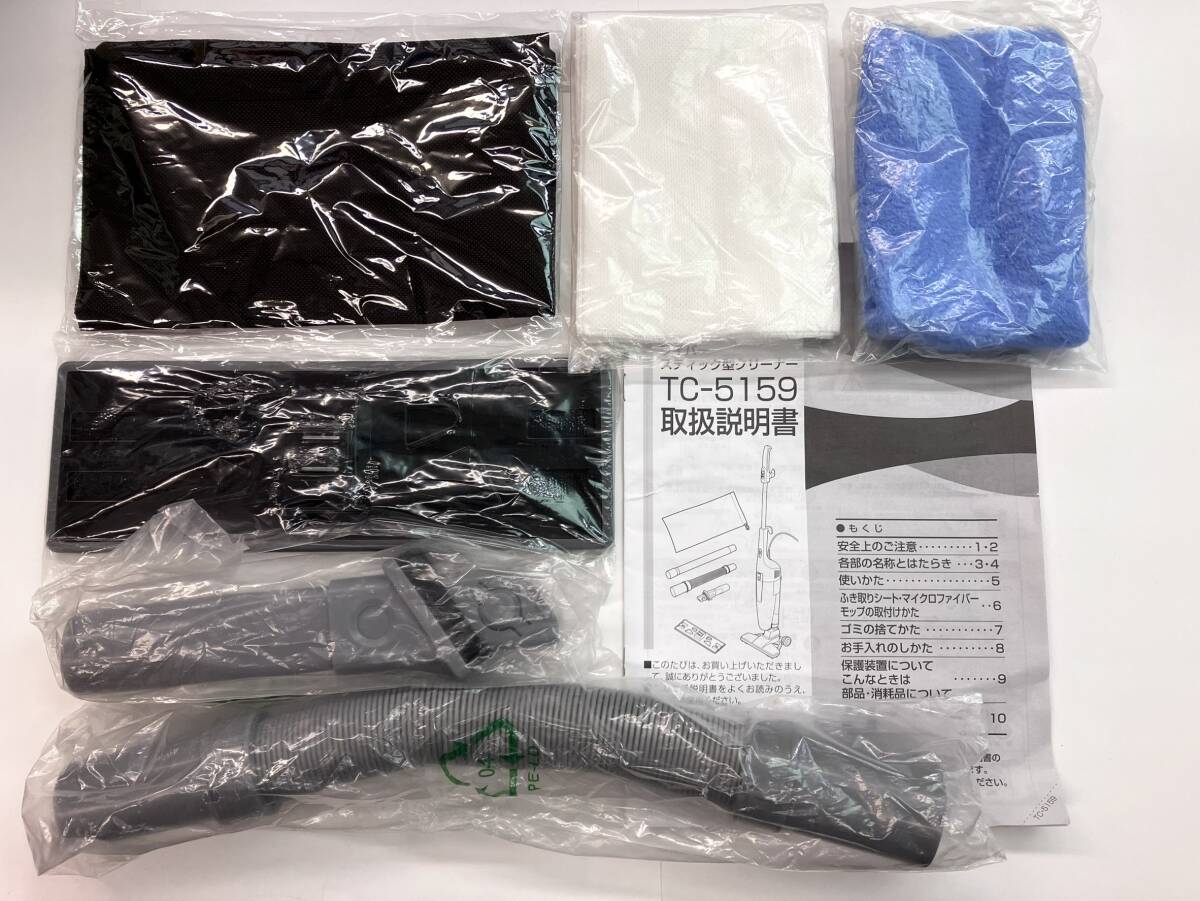 - 新品未使用【取説/付属品のみ】ツインバード TC-5159 スティック型クリーナー すき間ノズル(毛ブラシ付) 伸縮ホース シート固定板 巾着袋他