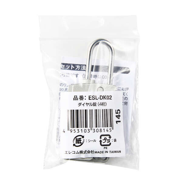 - ダイヤル錠 4連ダイヤル式南京錠タイプ 鍵不要で設定できるので、紛失によるトラブルから解放されます: ESL-DK02