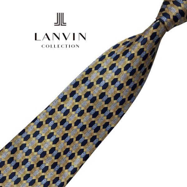 > ★美品★総柄★高級ネクタイ★LANVIN パターン柄 ランバン フランス製 シルク プレス済み USED ネコポス可 t1294