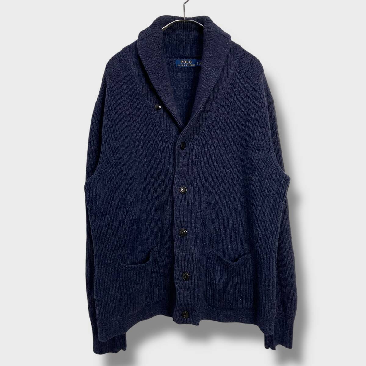 - 送料無料☆Ralph Lauren☆ラルフローレン☆ショールカラーカーディガン☆コットンニット☆L☆ネイビー☆B25M