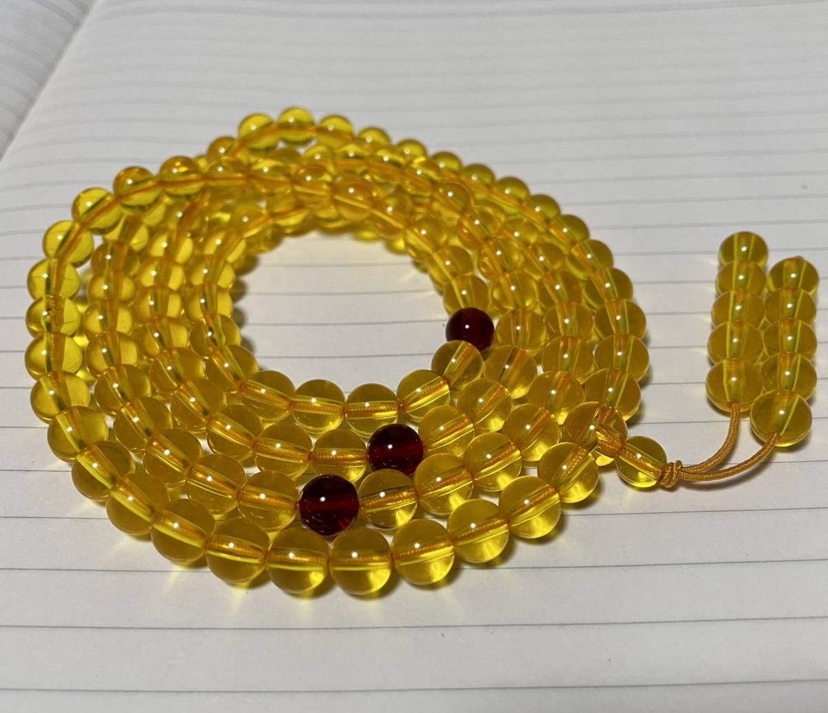 - 数珠 合成琥珀ブレスレット 7mm アンバー 蜜蝋 クリアイエロー 108珠 アクセサリー ファッション 男女兼用 御守 魔除 パワーストーン 幸運